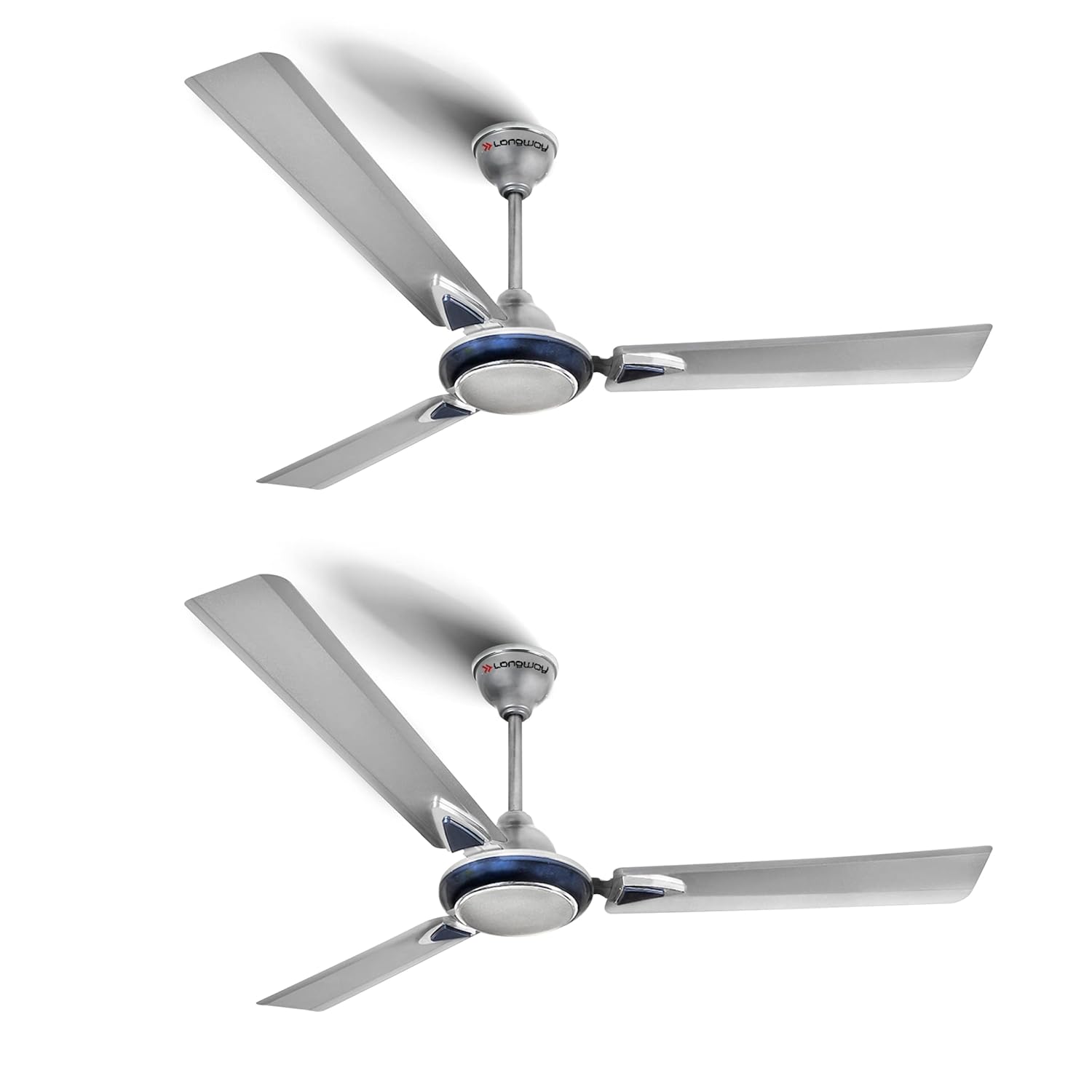 LONGWAY Starlite-1 P2 1200 mm/48 inch Ultra High Speed 3 Blade Anti-Dust Decorative Star Rated Ceiling Fan (Silver Blue, Pack of 2)
